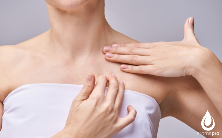 1. Clavícula: Começa com movimentos suaves e superficiais em torno das clavículas. Coloca as mãos cruzadas sobre o peito, coloca os dedos planos sobre as clavículas e faz movimentos circulares, 20-30 vezes.